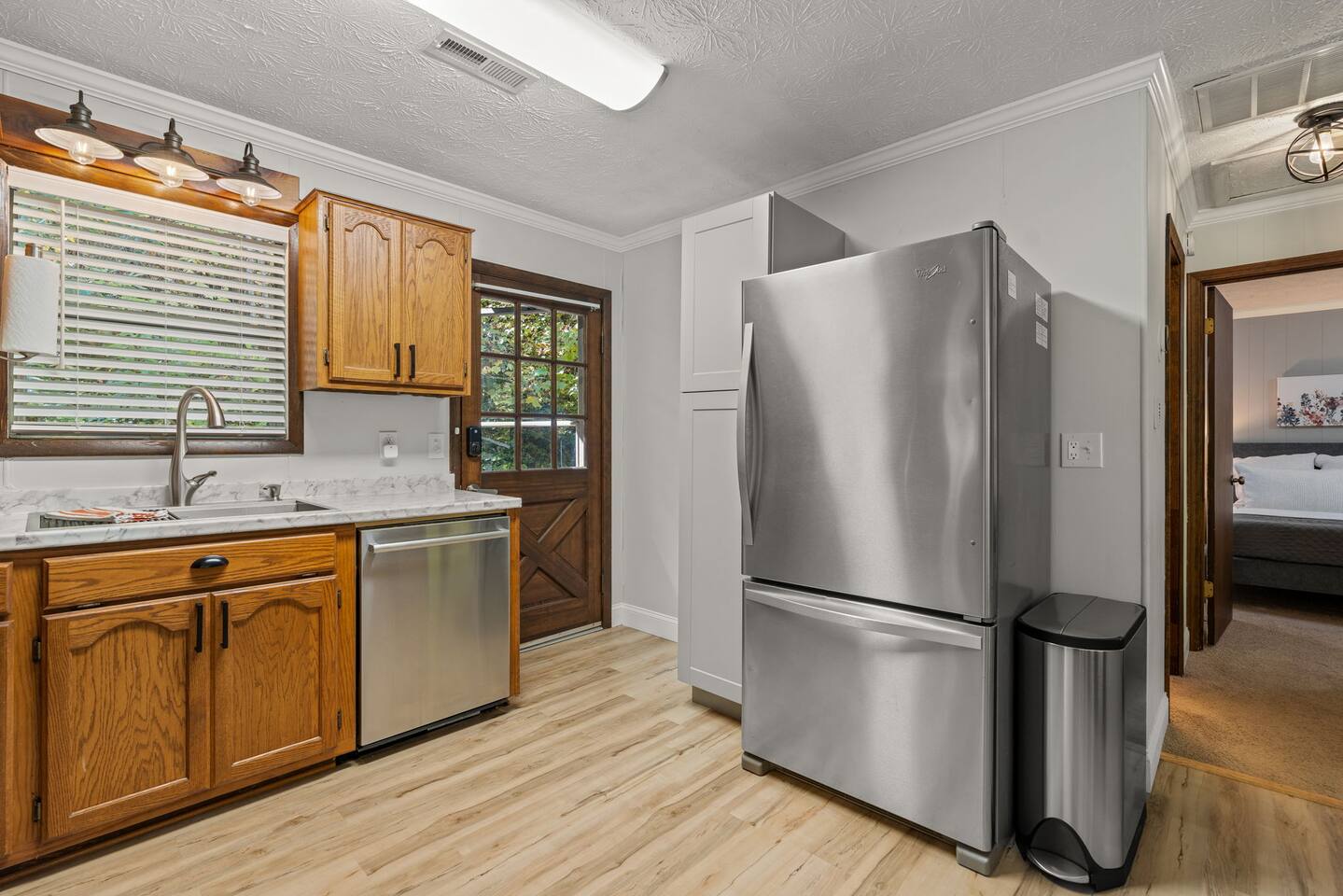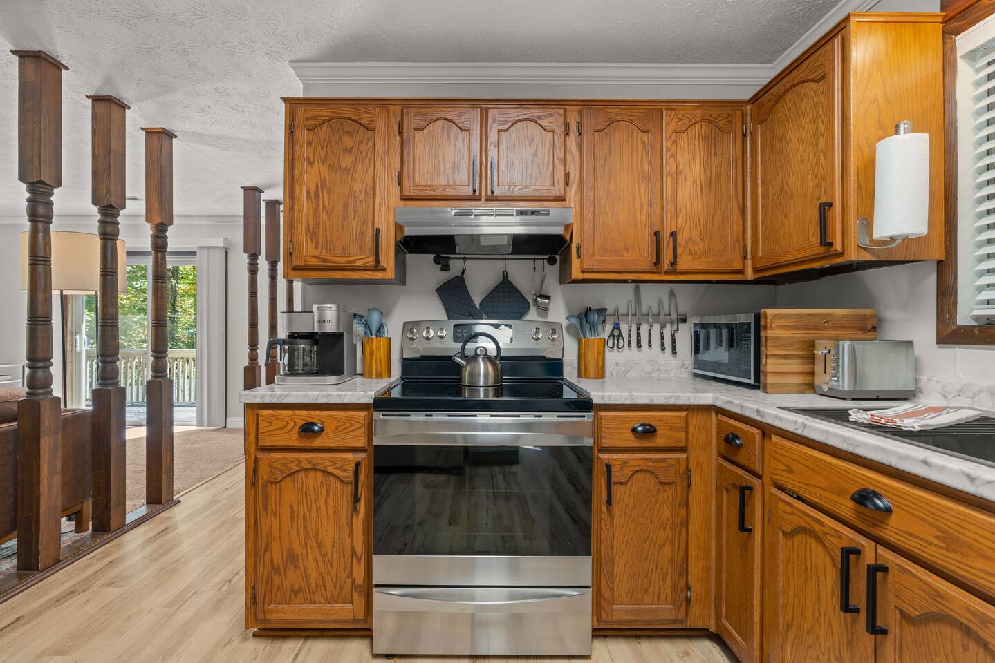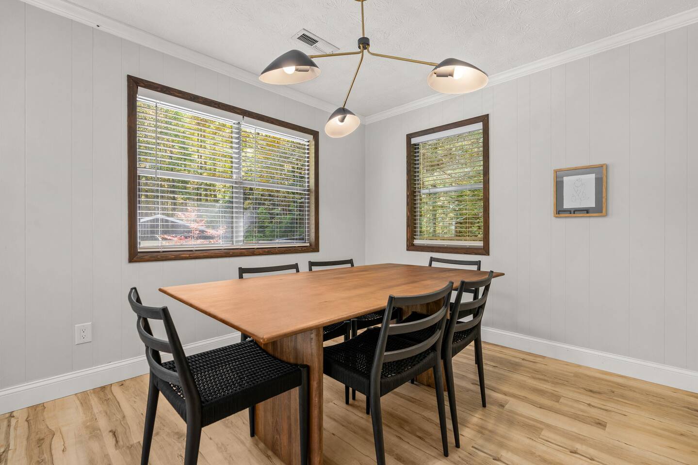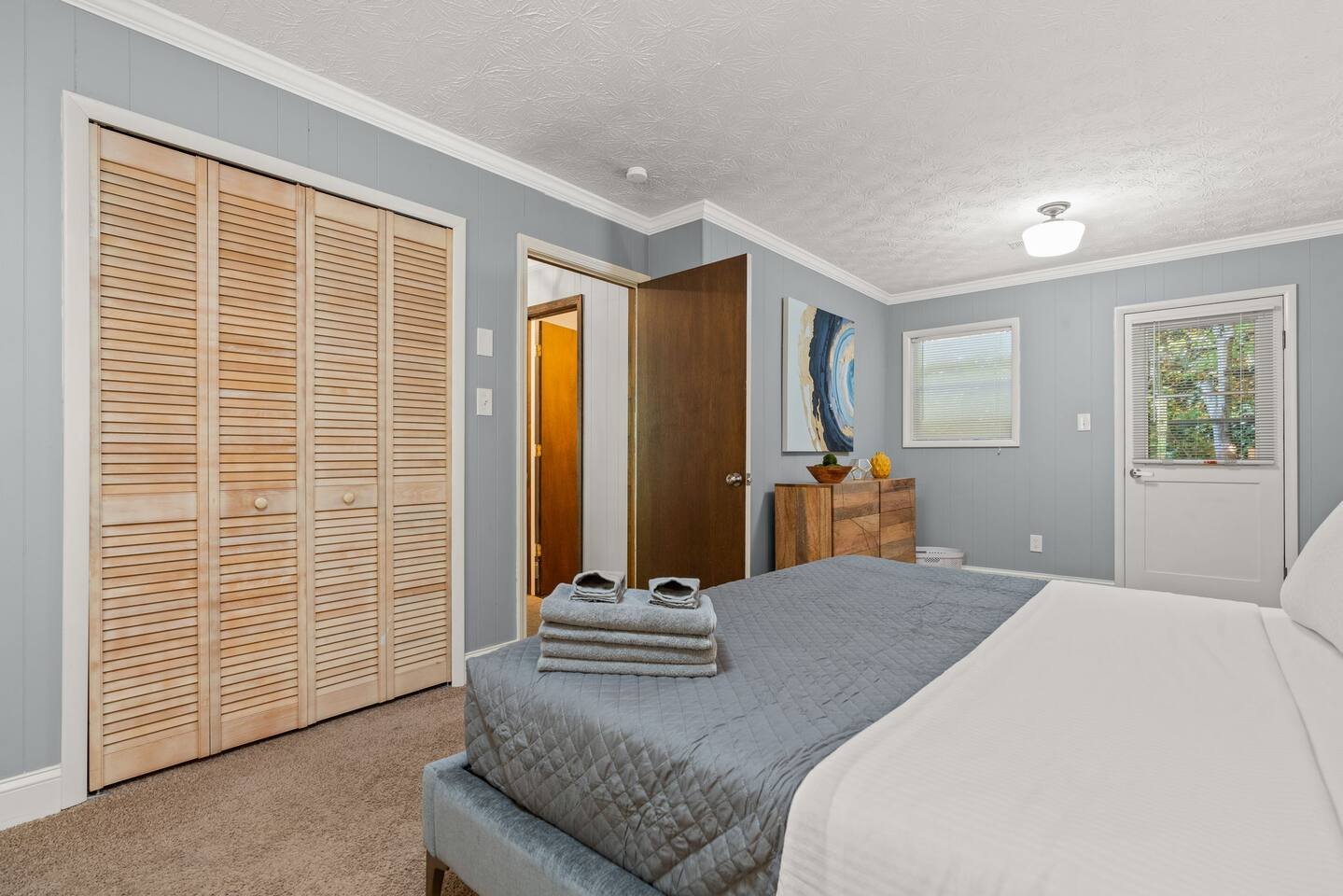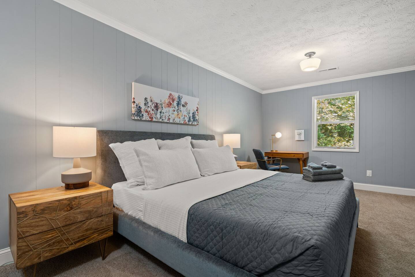 This is a two story house with master bedroom, bathroom, kitchen, dining room, and living room upstairs with a wraparound deck. The kitchen is pretty well stocked and should be sufficient for cooking delicious meals yourself, but please be sure to read our digital guidebook after booking, to see what items are provided. A supermarket (Ingles Markets) is 15-min drive away. Please note that there is no mobile reception in this neighborhood. So you most likely have difficulty in making/receiving calls or sending/receiving texts or one of Maps apps for navigation. Although we offer Wi-Fi on our property, it is asymmetric (500Mbps down/35Mbps up). If you plan to work using zoom heavily, this may not be an ideal property due to limited upstream bandwidth. In warmer months, you might see some cute creatures out of the window. From time to time, we encountered visitors such as various kinds of birds big and small in our yard and a squirrel and a deer on the hill outside the kitchen. Also, there are bears in the mountains. If you’re from a city, this can be quite a change of scenery! Out of 3 bedrooms, we currently offer only 1 (master) bedroom upstairs to our guests (until we complete renovation on other bedrooms downstairs). This is a non-smoking property. We would like every single guest to enjoy fresh air anywhere within the property (not just in the house). If you smoke (cigarettes or 420), please book elsewhere.